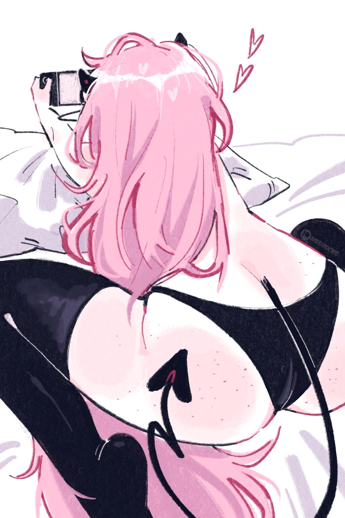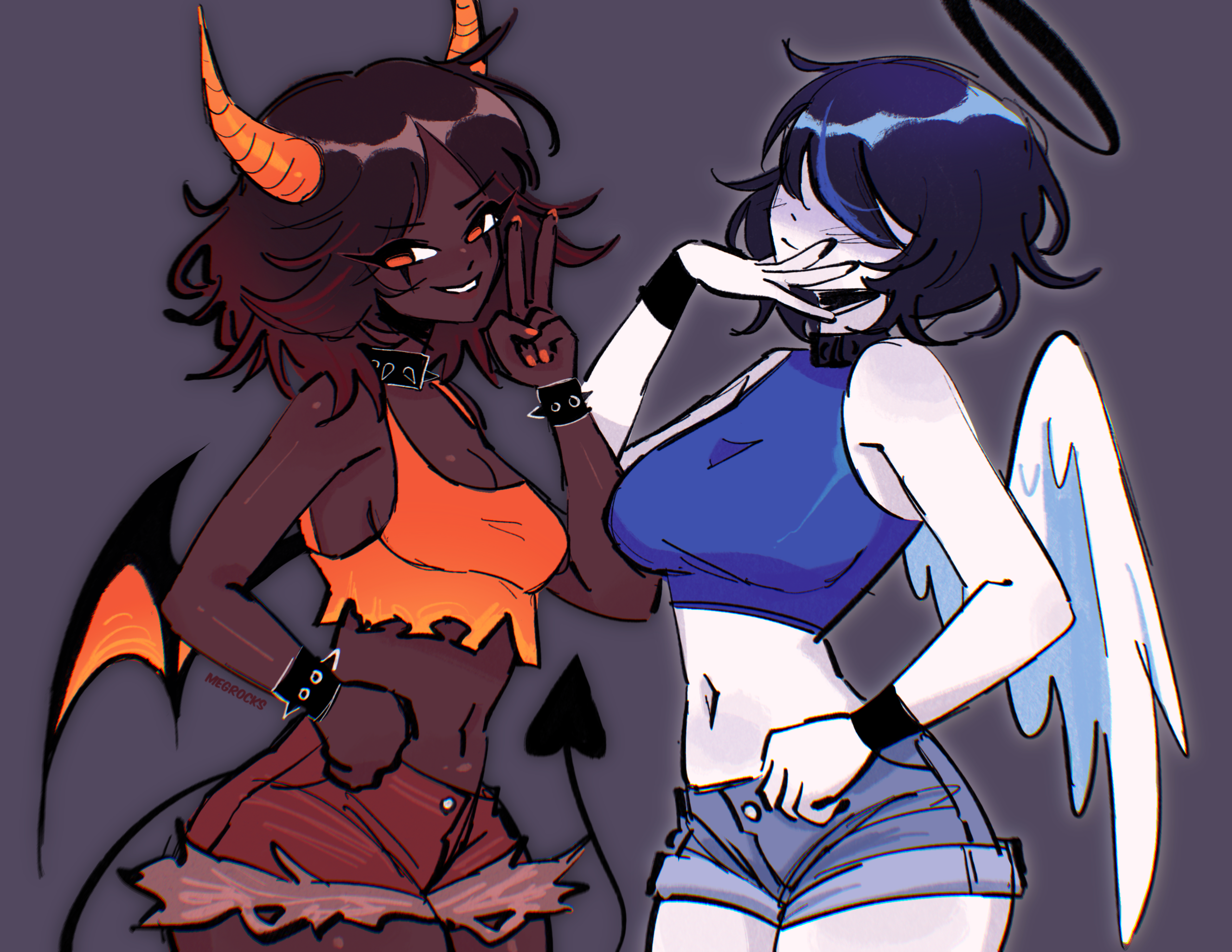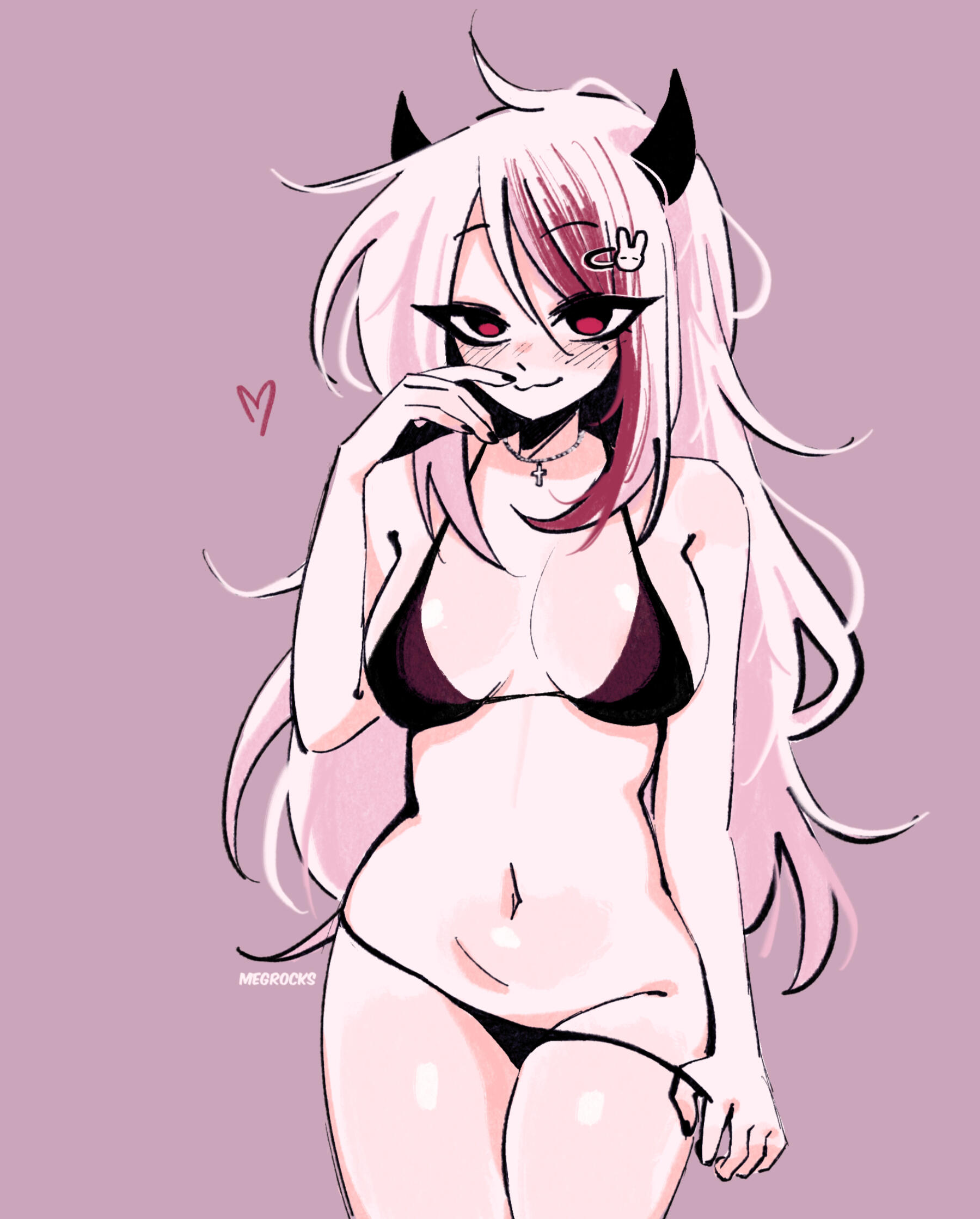 June spends most of her time in her room at her pink gaming battlestation playing games, streaming, listening to pop-punk and watching anime.She is a creature of comfort and positivity, despite being a succubus she remains incredibly wholesome and innocent. She prefers plushies and snacks over sexual acts...however she ends up in lewd situations due to her line of work.June grew up in Heck with a large family of sisters and single father in poverty. Her escapes from the chaotic household are video games and the internet.